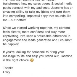 I'm Jasmine and I help busy business owners make more money with their words. My mission? Help more brilliant business owners show up online in a way that actually feels like them.
